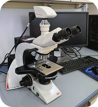 The Leica DM2500 is an upright brightfield microscope equipped with a color camera (Leica DFC450) for brightfield and differential interference contrast (DIC) imaging. If you need to perform fluorescence imaging try the Zeiss Axiovert 200M instead.